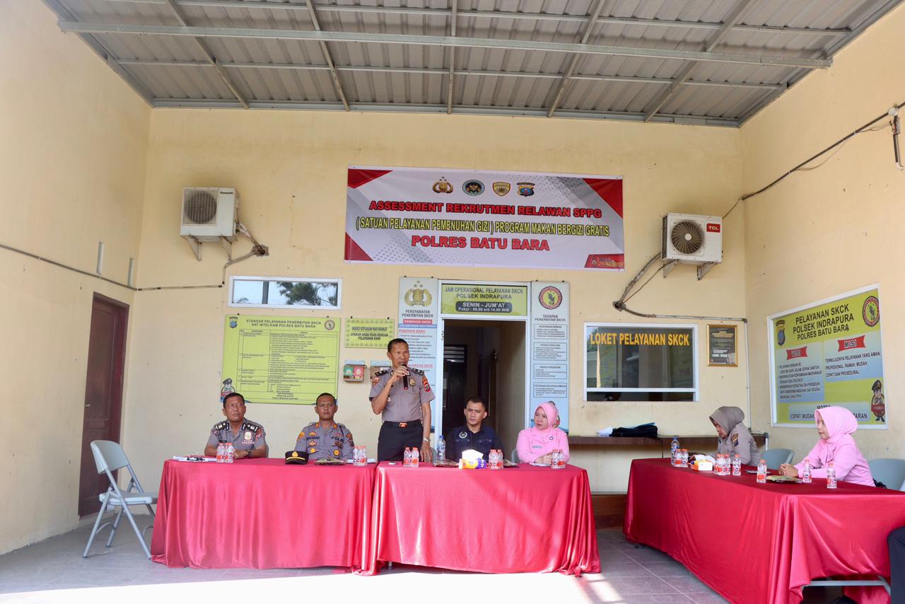 Polres Batu Bara melalui Polsek Indrapura melaksanakan assessment rekrutmen relawan SPPG (Program Makan Bergizi Gratis) di Polsek Indrapura, Rabu (4/2/2026) pukul 09.00 WIB. Kegiatan ini bertujuan untuk menjaring relawan yang berkomitmen, berintegritas, dan memiliki kepedulian terhadap pelayanan makan gizi gratis bagi anak sekolah.