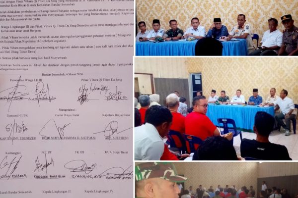 Binjai-Langkat // busertipikor.com. Mediasi perdana konflik Klenteng Thai Seng Hut Co di Binjai Barat bersama Warga lingkungan 3 yang digelar pada Rabu (4/3/26) dihadiri langsung oleh Ketua Pengurus Klenteng Elton Hotman bersama rekannya dan kubu warga yang berseteru di Kantor Kelurahan Bandar Sinembah, Kec. Binjai Barat, Kota Binjai. Turut hadir diantaranya; Camat, Kapolsek, Danramil, Kesbangpol,…