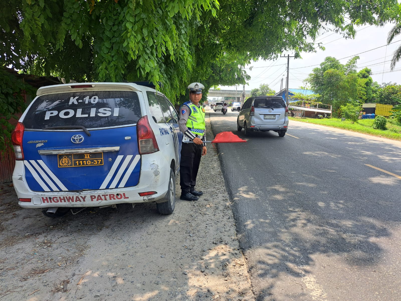 Guna mengantisipasi terjadinya kecelakaan lalu lintas (laka lantas) dan kemacetan panjang, personel Sat Lantas Polres Batu Bara melalui Pos Lantas Indrapura melaksanakan patroli rutin di sepanjang Jalan Lintas Sumatera (Jalinsum), Senin (6/4) sore.