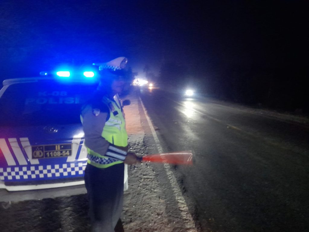 ​Dalam kegiatan tersebut, dua personel tangguh yakni Aipda Busdanil dan Bripka Dudi diterjunkan langsung ke lapangan. Dengan menyalakan lampu rotator berwarna biru, petugas menyisir titik-titik rawan sepanjang Jalinsum Indrapura sebagai bentuk tindakan preventif kepolisian.
