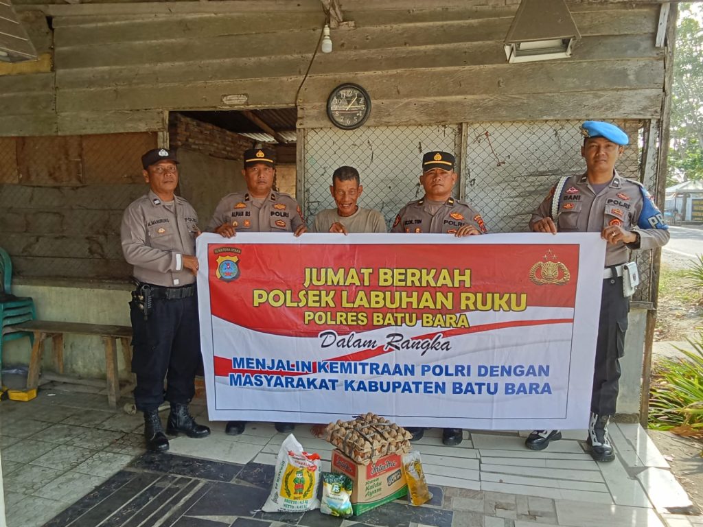 Kapolsek Labuhan Ruku bersama personel Polsek Labuhan Ruku melaksanakan kegiatan sosial bertajuk Jumat Berkah dengan menyalurkan bantuan sembako kepada warga kurang mampu di wilayah hukum Polsek Labuhan Ruku, Jumat (6/3/2026) sekitar pukul 09.30 WIB.