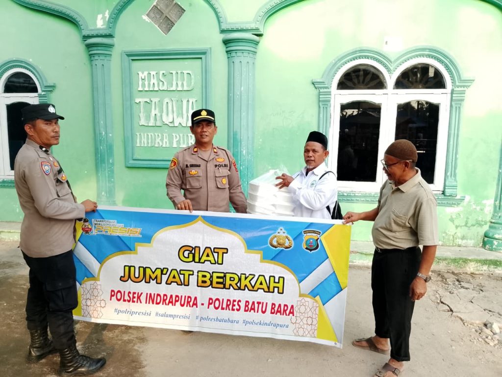 Kepolisian Sektor (Polsek) Indrapura, Polres Batu Bara, menunjukkan sisi humanis dalam melayani masyarakat selama bulan suci Ramadan 1447 H. Pada Jumat (6/3/2026), personel kepolisian setempat membagikan paket takjil dan nasi kotak kepada para jemaah Masjid Taqwa Indrapura, Kecamatan Air Putih, Kabupaten Batu Bara.