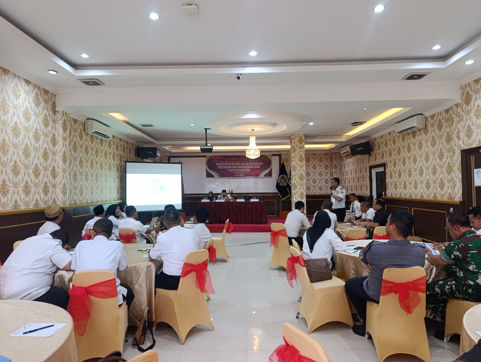 ​Acara dibuka dengan khidmat, dimulai dari registrasi peserta hingga menyanyikan lagu kebangsaan Indonesia Raya. Rangkaian kegiatan yang meliputi sesi rapat inti dan diskusi mendalam ini dirancang untuk menyamakan persepsi antar-instansi dalam memantau aktivitas warga asing di wilayah tersebut.