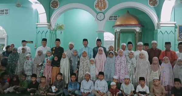 Usai melaksanakan ibadah shalat subuh yang khidmat, agenda dilanjutkan dengan pemberian santunan secara simbolis kepada 226 anak yatim-piatu yang berdomisili di kawasan Mompang Jae.