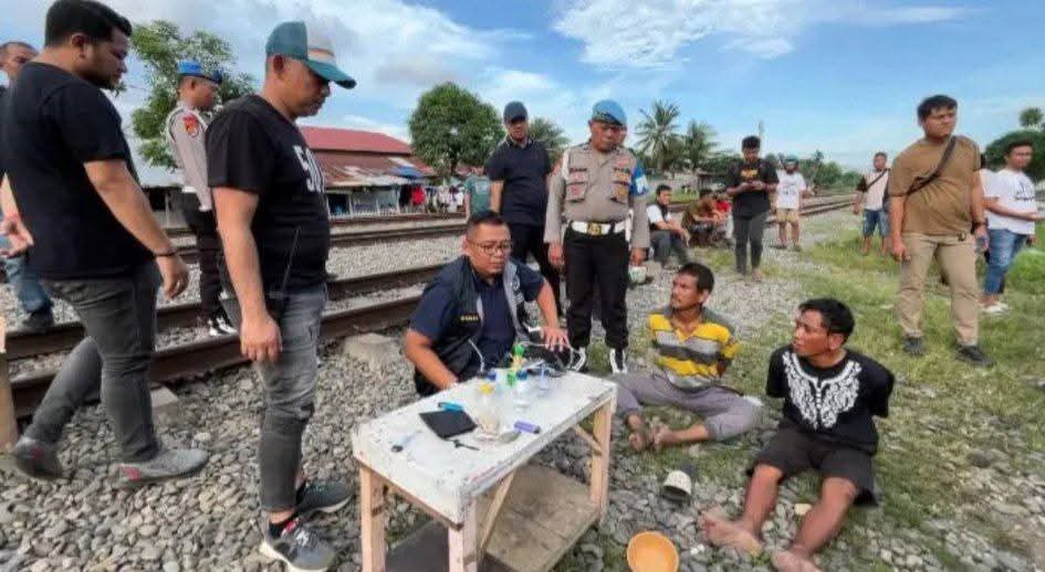 Medan// busertipikor.com Satres N4rk0b4 Polrestabes Medan kembali menggerebek sarang n4rk0b4 di kawasan Rel Kereta Api, Tembung, Kamis (18/12/2025) sore.